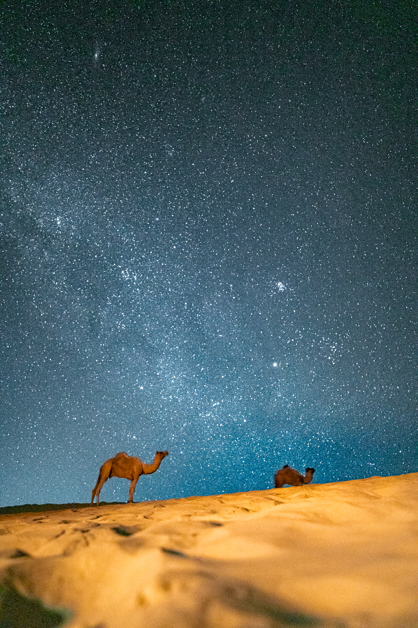 Soon after the sunset, a cool breeze swept over the dunes and took away most of the latent heat trapped in the sand. A bonfire was lit and the group had gathered around sharing stories about life, culture, and travel experiences. As it got darker the sky was lit up with the light of millions of stars. It was the perfect opportunity to shoot some photos of the night sky.